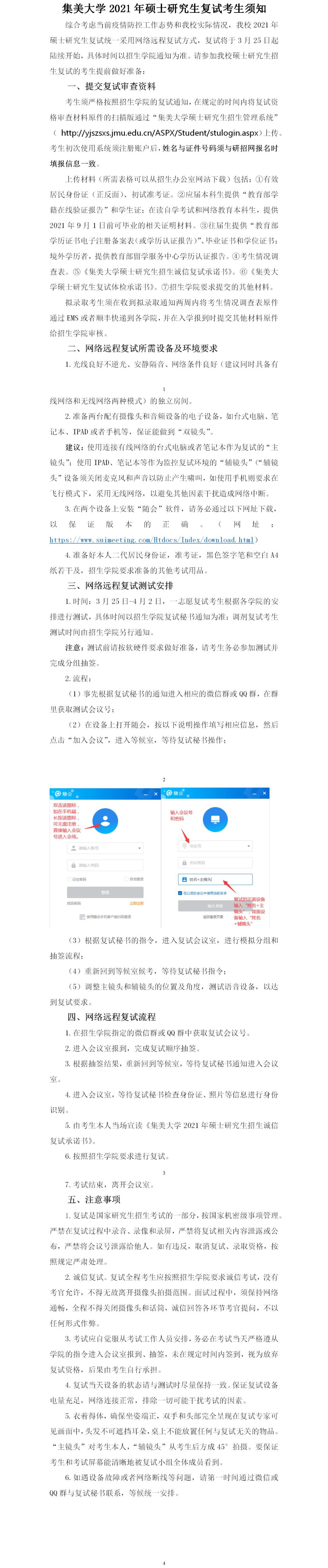 据悉,集美大学2021年硕士研究生复试考生须知已公布,聚创集美大学考研小编为你整理如下内容: