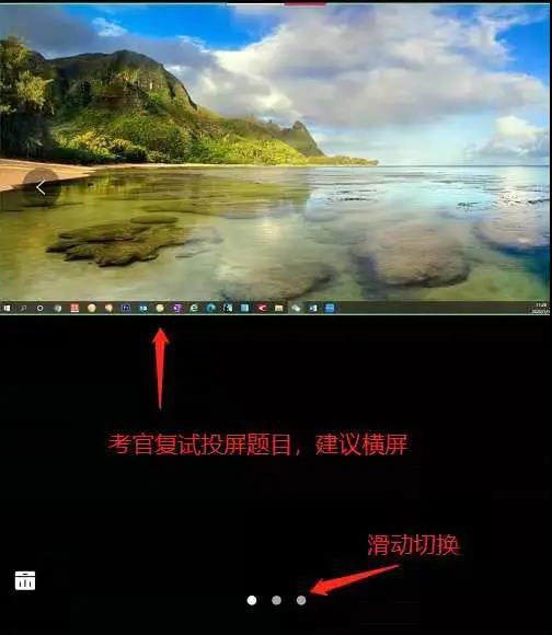 考生进入复试后,第一机位将看到如下画面,建议考生横屏切换到考官投屏即可。