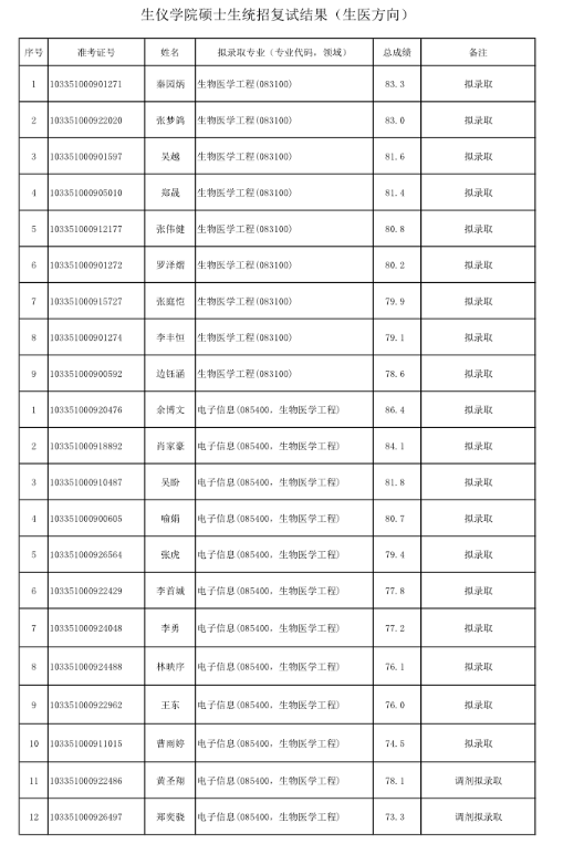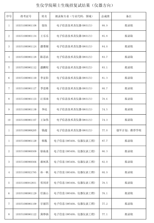 以上是聚创考研网为考生整理的"浙江大学生仪学院2021年硕士统招复试结果(生医方向、仪器方向)"的相关考研信息,希望对大家考研备考有所帮助!