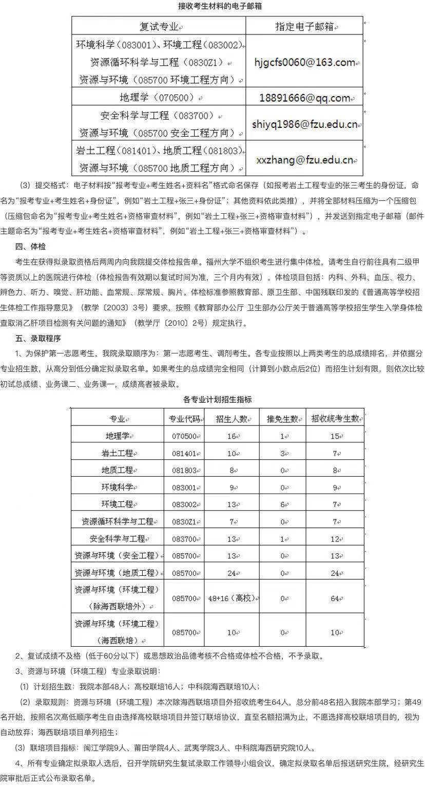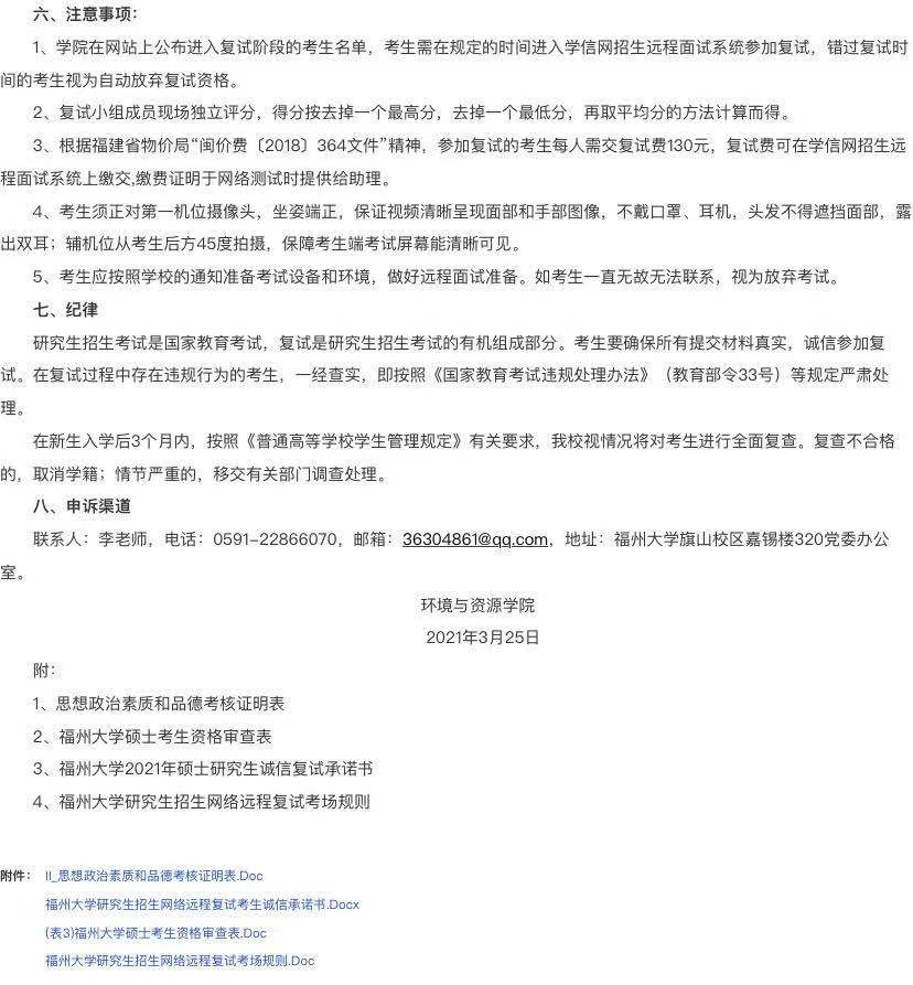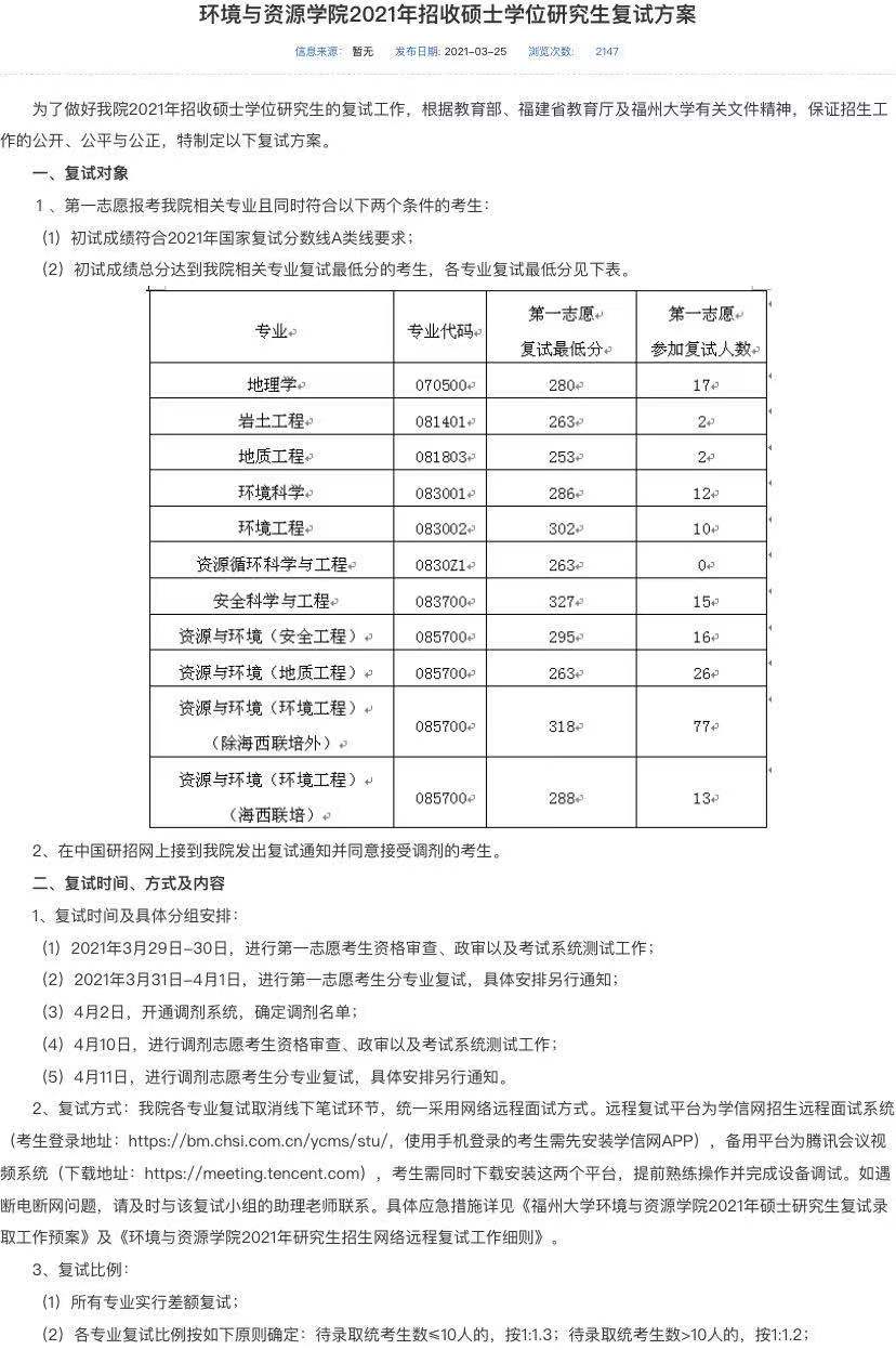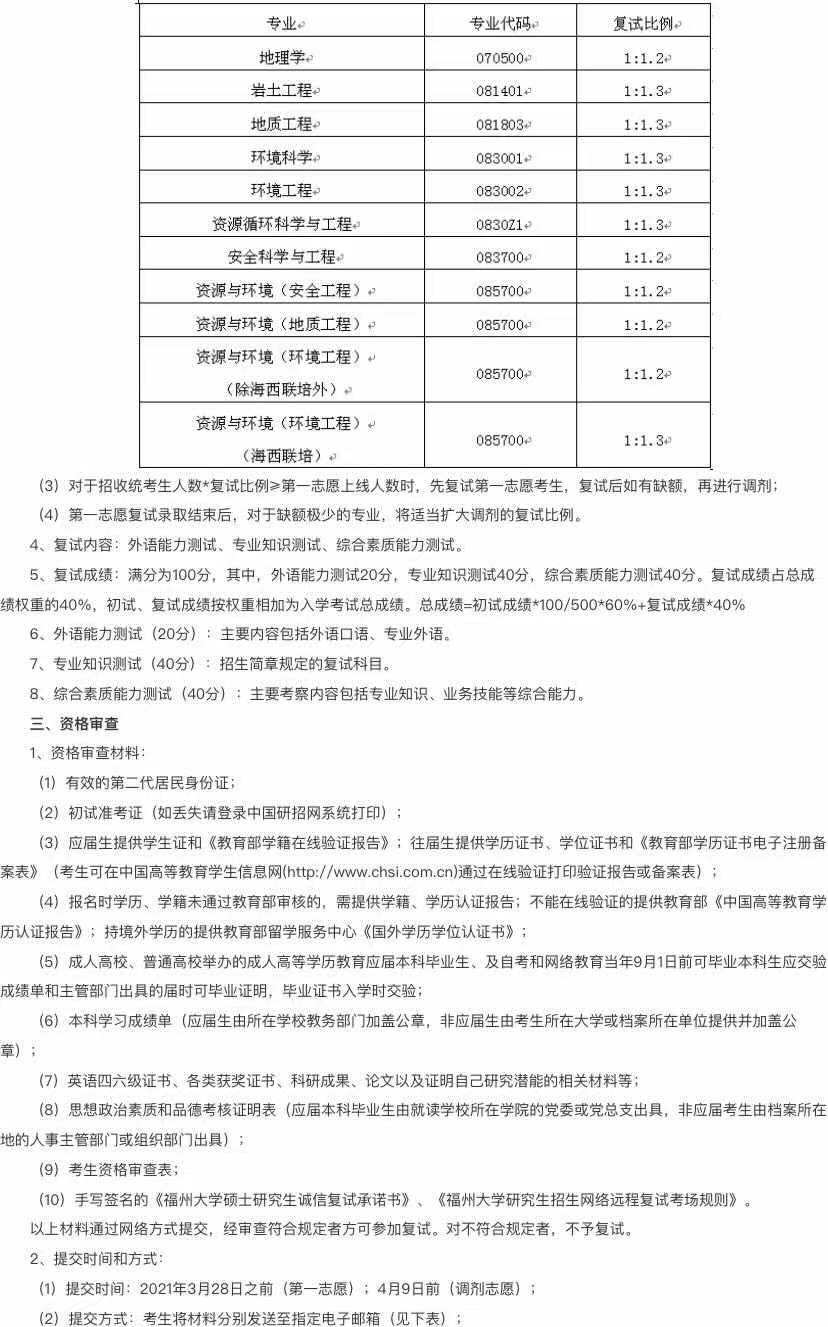 据悉,福州大学环境与资源学院2021年招收硕士学位研究生复试方案已公布,聚创福州大学考研网汇总信息如下: