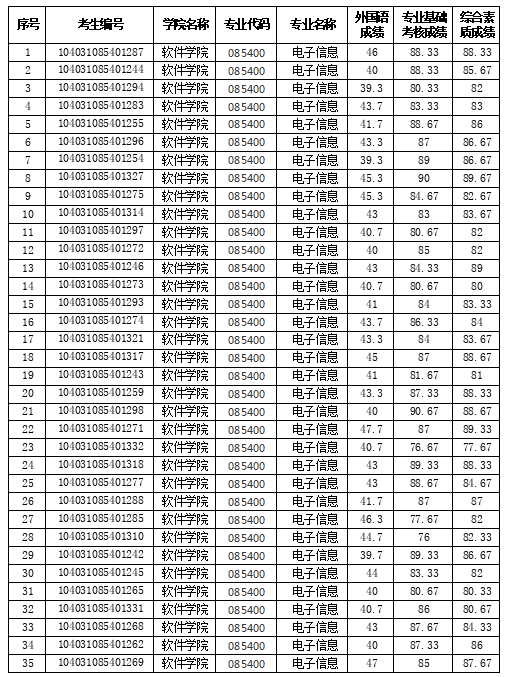 南昌大学软件学院2021年攻读硕士学位研究生外国语成绩、专业基础考核成绩、综合素质成绩公示