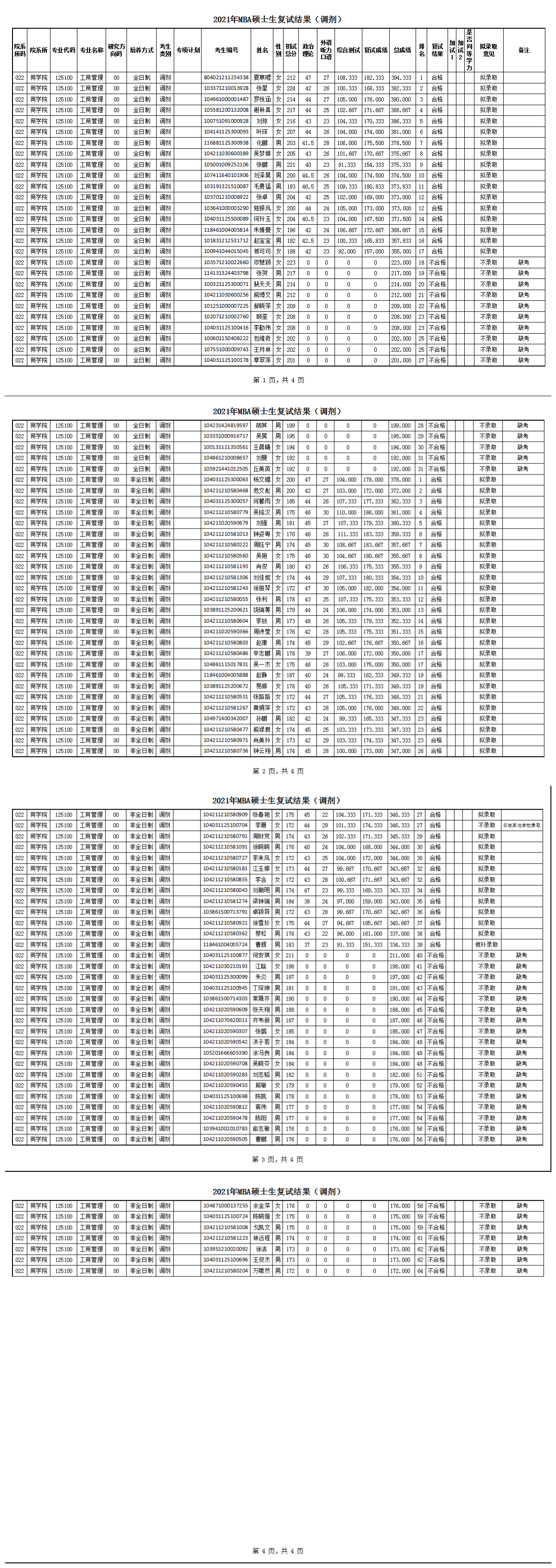 据悉,江西师范大学商学院2021年MBA一批次调剂复试结果公示已公布,聚创江西师范大学考研网为大家整理如下:
