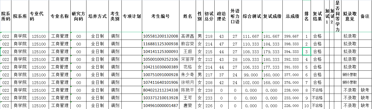 据悉,江西师范大学商学院2021年MBA第二批次调剂复试结果公示已公布,聚创江西师范大学考研网为大家整理如下: