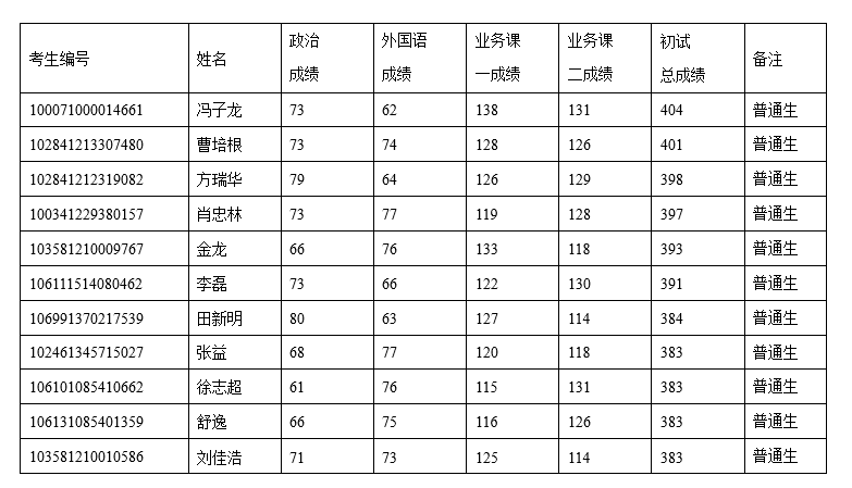 一、复试名单公示(含单科分数要求)