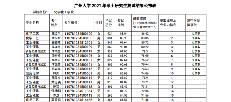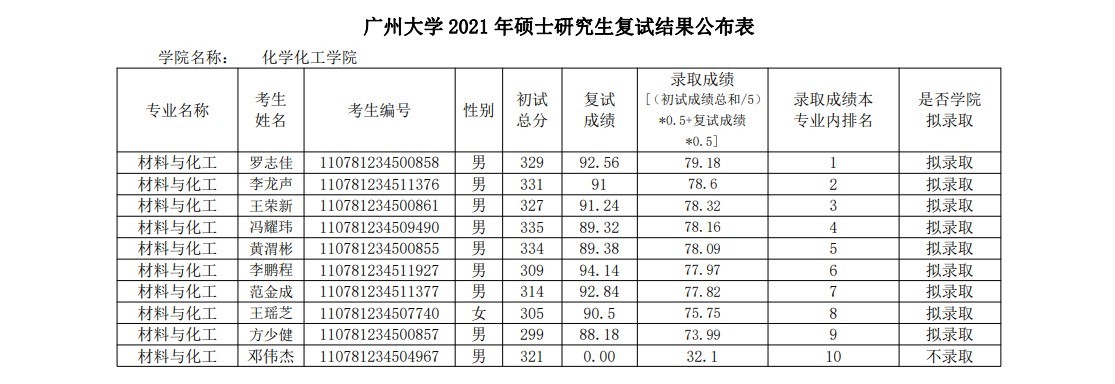 据悉,广州大学化学化工学院2021年招收硕士研究生第一志愿复试结果公布已公布,聚创广州大学考研小编为大家整理内容如下: