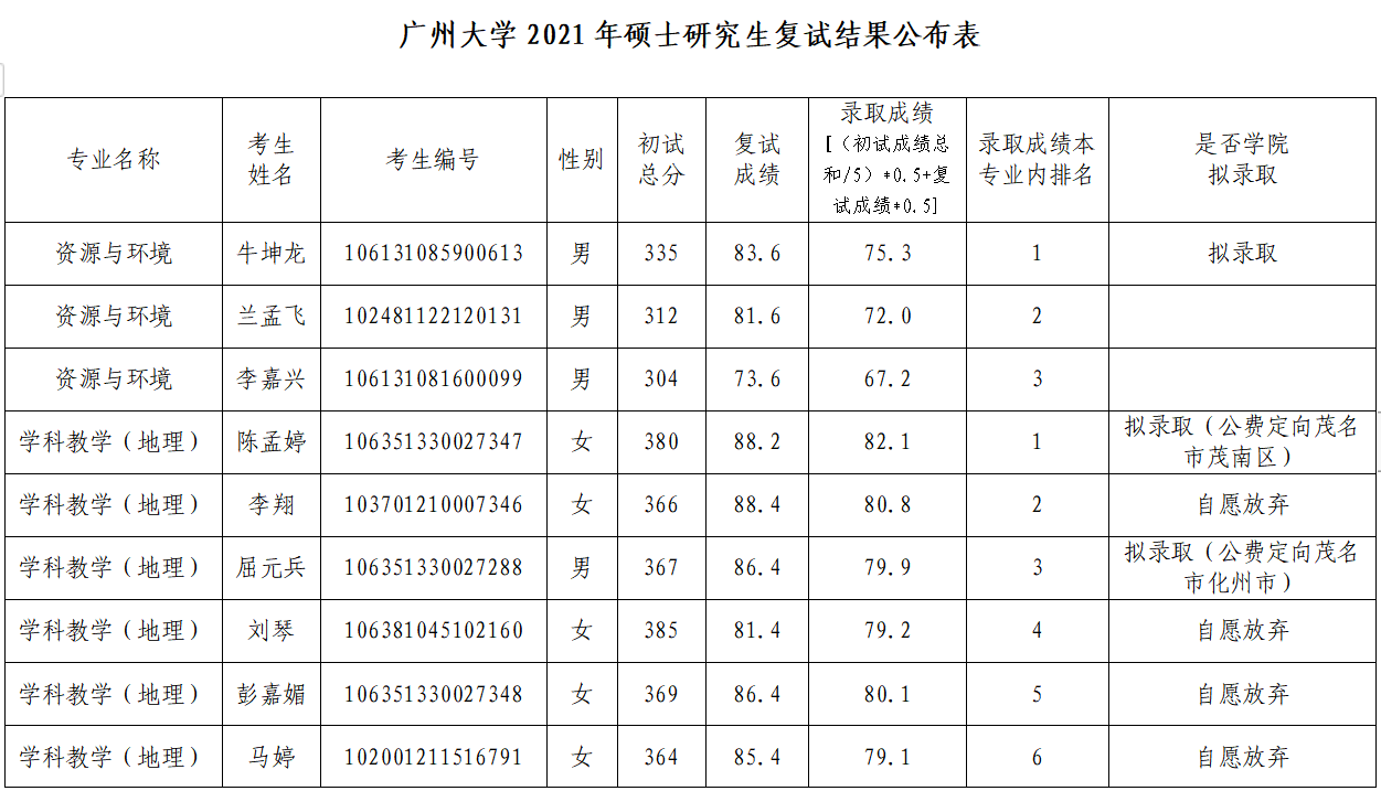 据悉,广州大学地理科学与遥感学院2021年硕士研究生复试结果公布表(第二批调剂)已公布,聚创广州大学考研小编为大家整理内容如下: