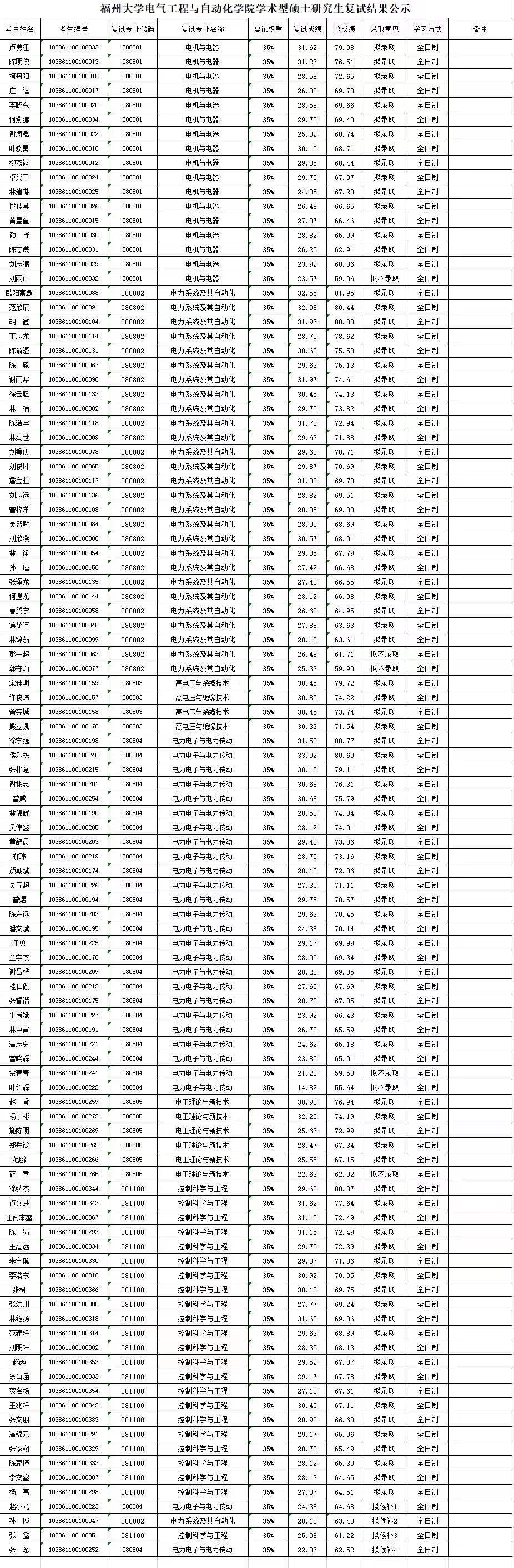 据悉,福州大学电气工程与自动化学院2021年学术型硕士研究生招生复试结果公示已公布,聚创福州大学考研网汇总信息如下: