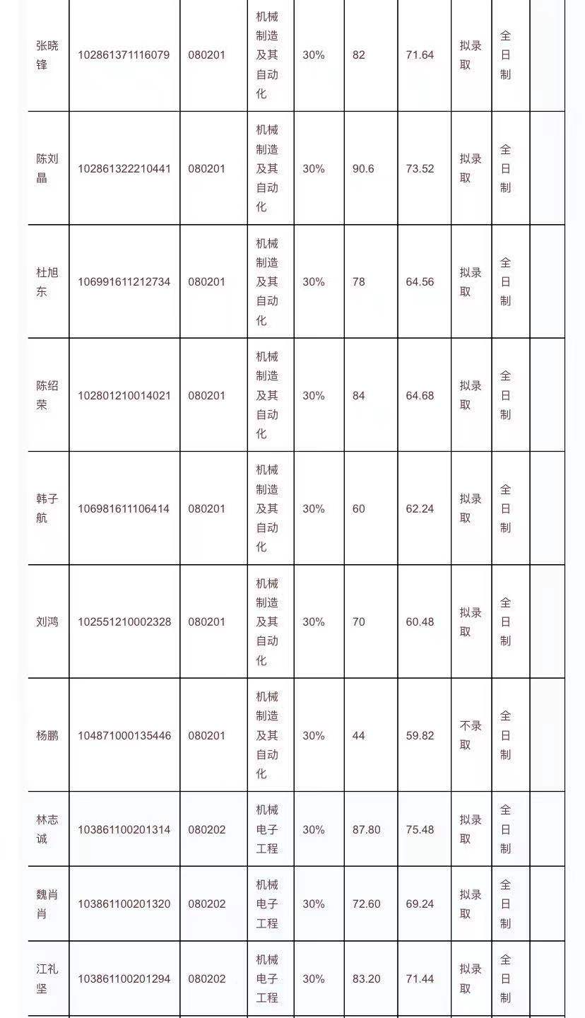 据悉,2021年福州大学机械工程与自动化学院硕士研究生复试考生情况表(公示)已公布,聚创福州大学考研网汇总信息如下:
