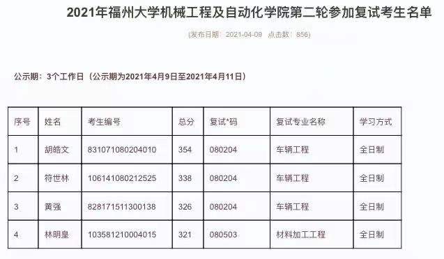 据悉,2021年福州大学机械工程与自动化学院第二轮参加复试考生名单已公布,聚创福州大学考研网汇总信息如下: