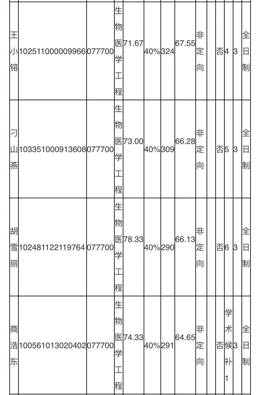 现将2021年第2批生物医学工程专业调剂考生复试成绩公示如下: