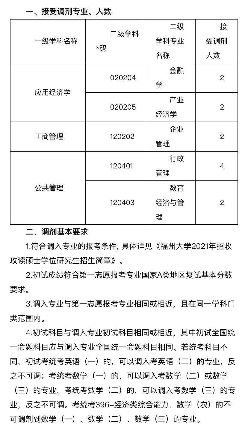 据悉,福州大学经济与管理学院2021年招收全日制硕士研究生调剂方案(二)已公布,聚创福州大学考研网汇总信息如下: