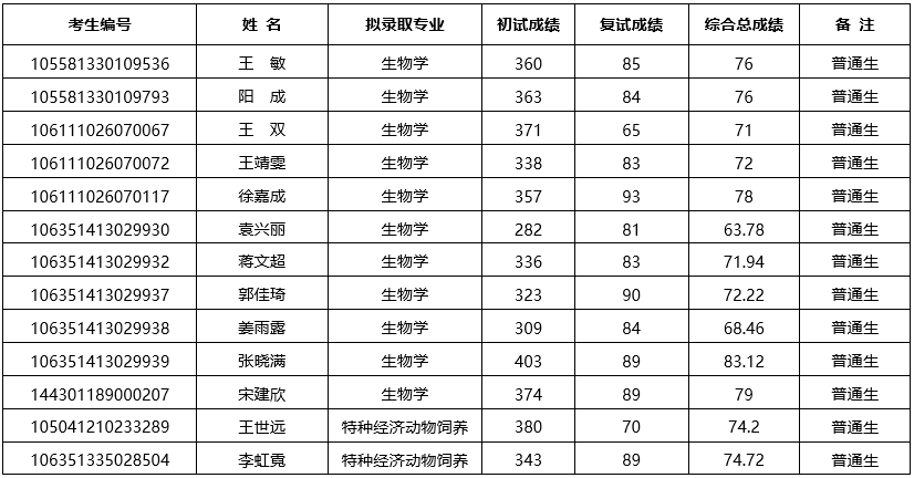 西南大学生物学研究中心关于2021年硕士研究生拟录取名单的公示(不含推免生)已发布,聚创西南大学考研网为大家整理了如下: