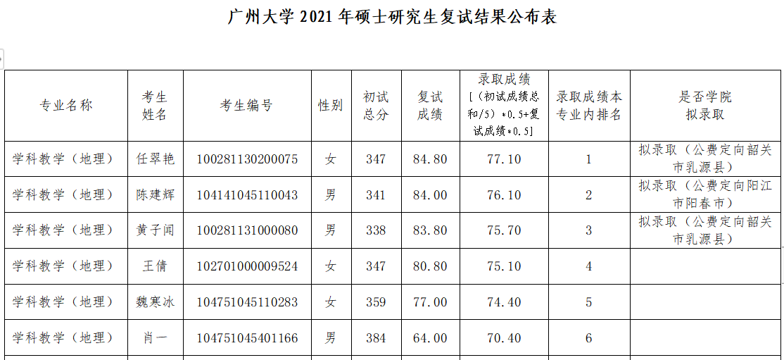 以上是聚创考研网为考生整理的"广州大学地理科学与遥感学院研究生复试结果公布表(第三批调剂)"的相关考研信息,希望对大家考研备考有所帮助!