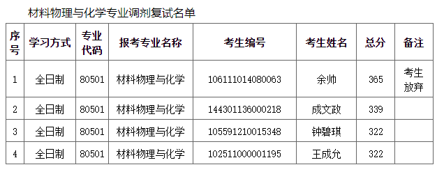 凝聚态物理专业调剂复试名单