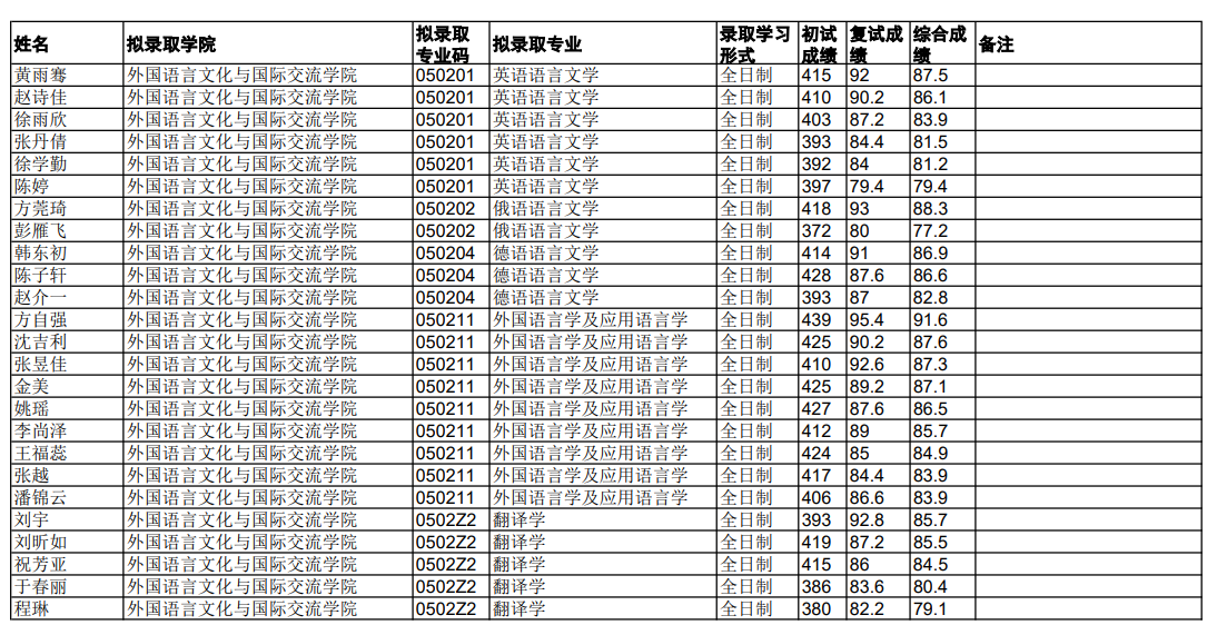 据悉,浙江大学外语学院2021年硕士研究生拟录取名单公示,聚创浙江大学考研网小编为你整理如下内容: