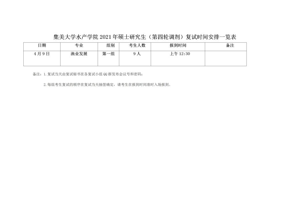 据悉,集美大学水产学院2021年硕士研究生(第四轮调剂)复试时间安排一览表已公布,聚创集美大学考研小编为你整理如下内容: