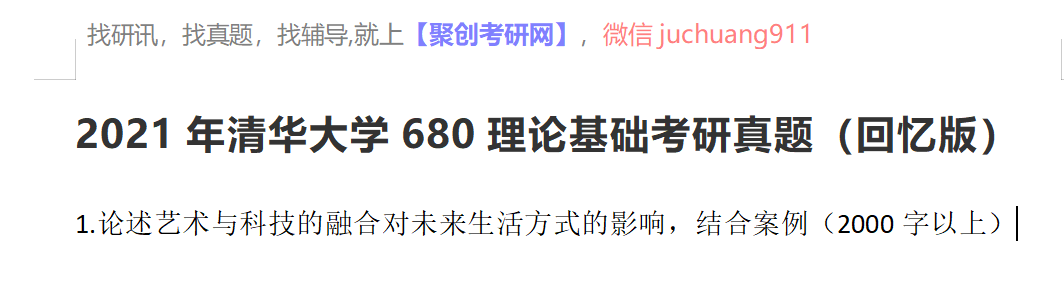 以上是聚创考研网为考生整理的"2021年清华大学680理论基础考研真题(回忆版)"的相关考研信息,希望对大家考研备考有所帮助! 备考过程中如有疑问,也可以添加老师微信juchuang911进行咨询。