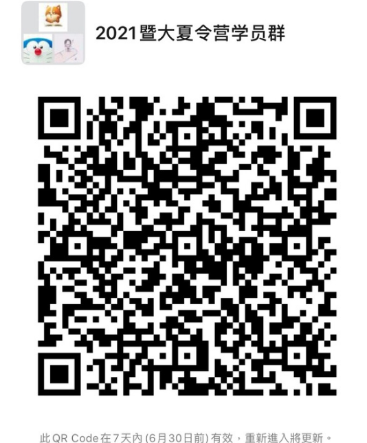 受新冠疫情影响,此次暑期研修班将采取线上会议的形式,具体线上课程及活动通知将于微信群作进一步通知。微信群二维码如下:(进群请备注学校-姓名)