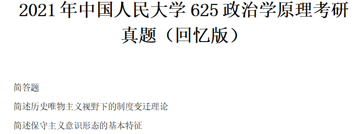 完整版请下载附件:2021年中国人民大学625政治学原理考研真题(回忆版)