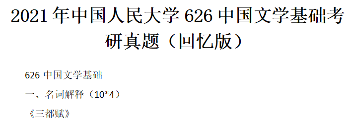 完整版请下载附件:2021年中国人民大学626中国文学基础考研真题(回忆版)