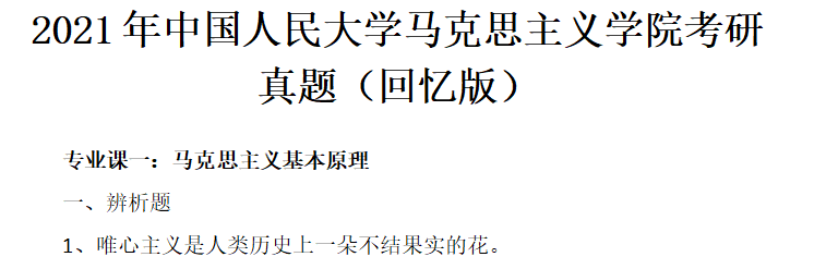 完整版请下载附件:2021年中国人民大学马克思主义学院考研真题(回忆版)