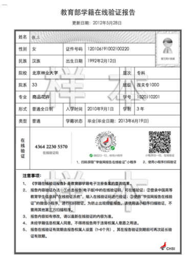 1、全日制应届本科毕业考生(含全日制成人高校本科毕业生)除上传上述“身份审核”材料外,还需提供学生证及“中国高等教育学生信息网”的《教育部学籍在线验证报告》。样图如下: