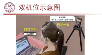 2.硬件设备。网络远程复试采用双机位。一是主机位(钉钉),需使用笔记本电脑或台式机、摄像头、麦克风、音箱。二是辅机位(腾讯会议),需使用手机或笔记本电脑或台式机或pad等平板设备(带有摄像头),放于考生侧后方45度,用于监考人员在复试过程中观测考生的后方及周边环境情况。应确保网络信号良好且能满足复试要求,应具有有线宽带、WIFI、4G/5G网络等网络条件。
