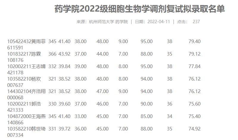 据悉,杭州师范大学2022年药学院调剂拟录取名单,聚创杭师考研网小编为大家整理如下: