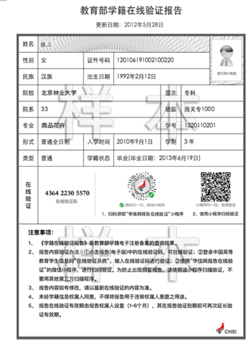 1、在渝高校2023届全日制应届本科毕业考生(含全日制成人高校本科毕业生)中,报名系统提示未通过学籍校验的考生,除上传上述“通用材料”外,还须上传“中国高等教育学生信息网”的《教育部学籍在线验证报告》。样照如下: